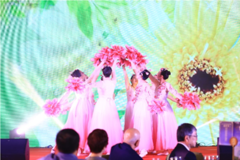公司領導氣勢磅礴的朗誦加上公司女同事們的舞蹈,展現出一幅花團錦簇的春景,讓人沉醉其中。