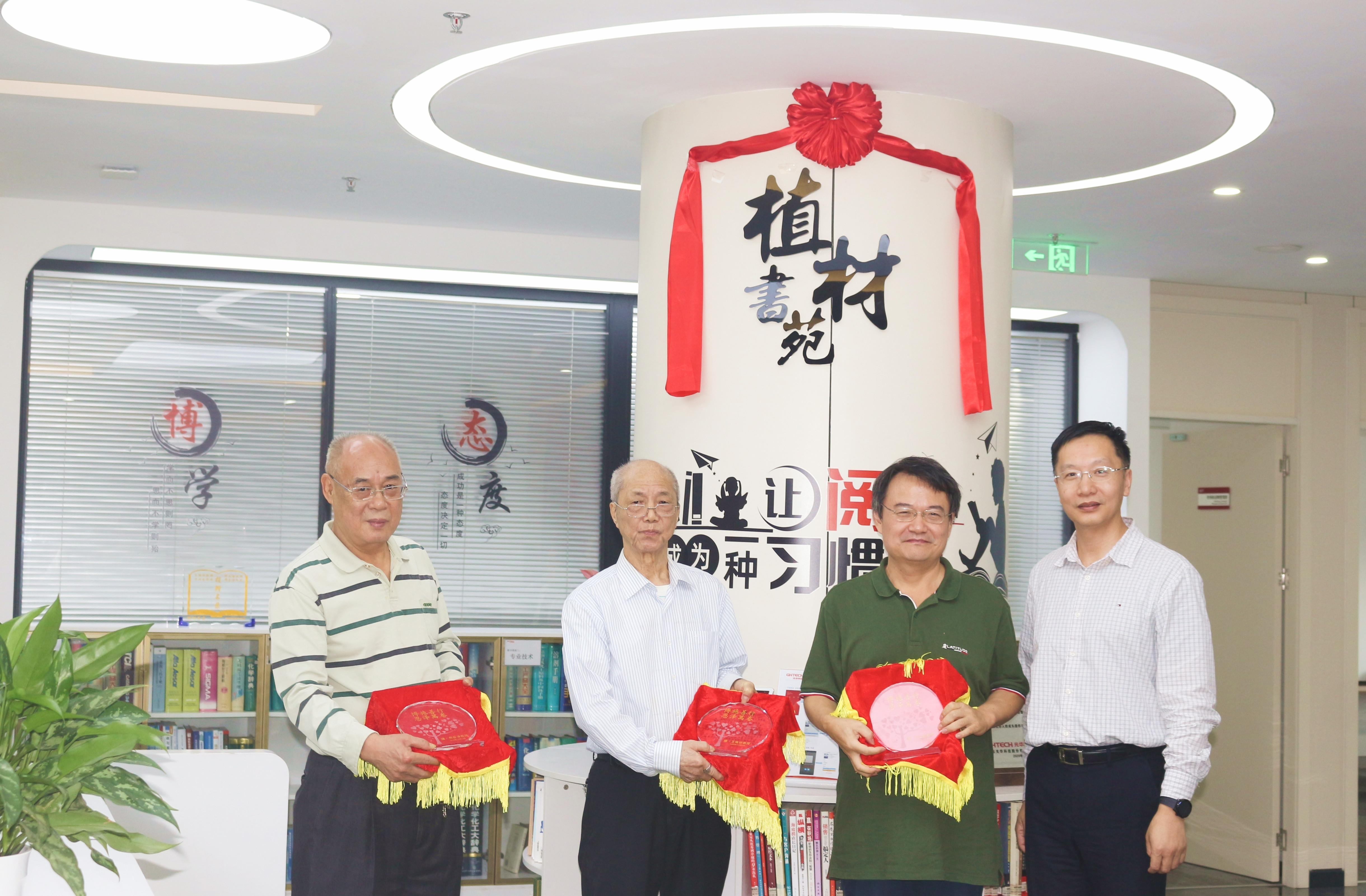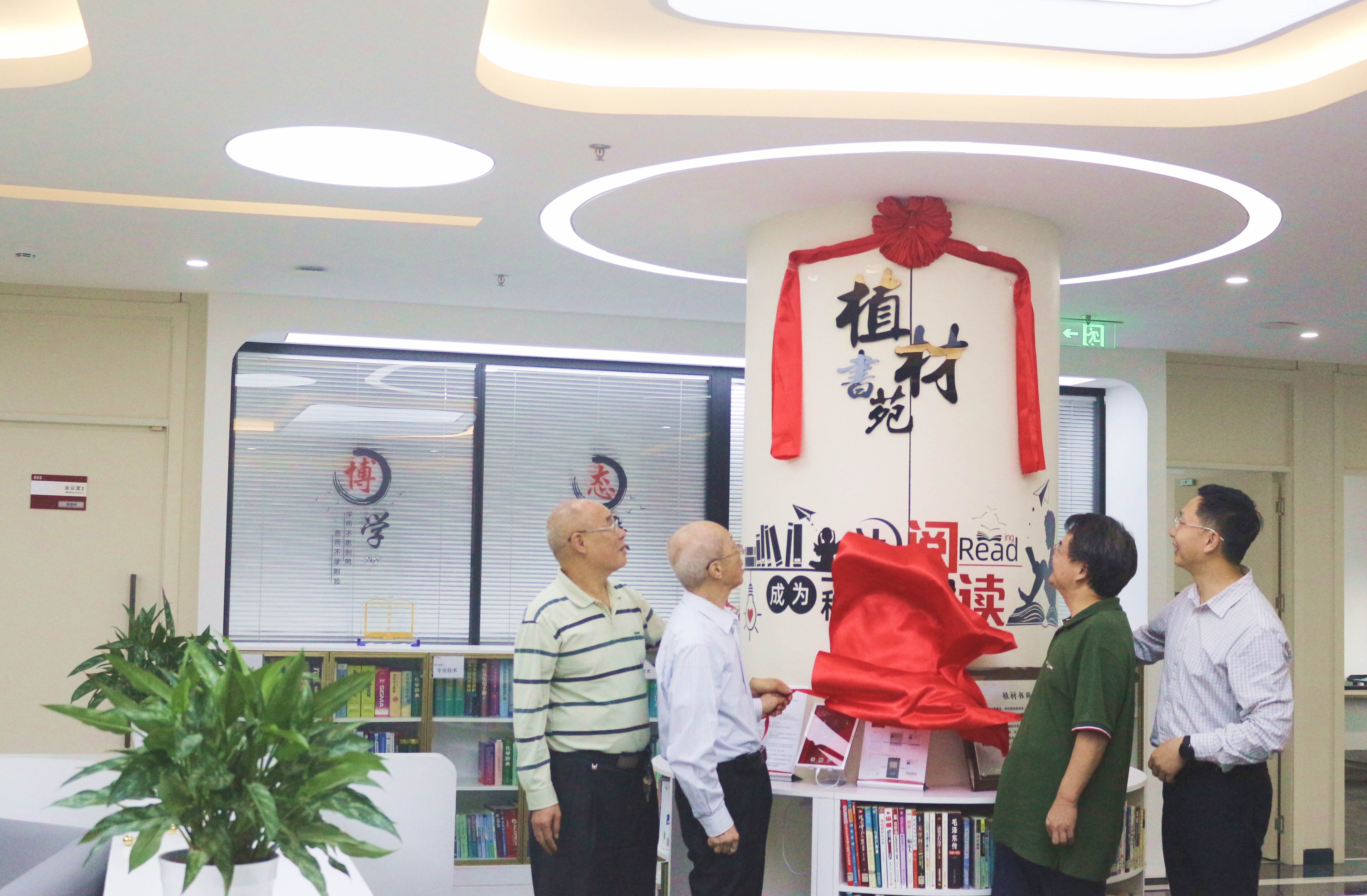 三尺講臺(tái)植春花,四位教授謀佳,教授們共同為書苑揭牌。