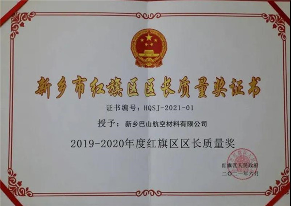 喜報丨巴山公司喜獲新鄉市紅旗區區長質量獎