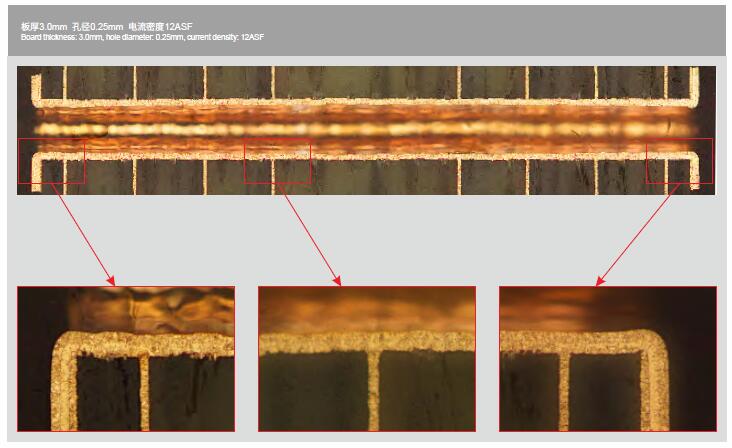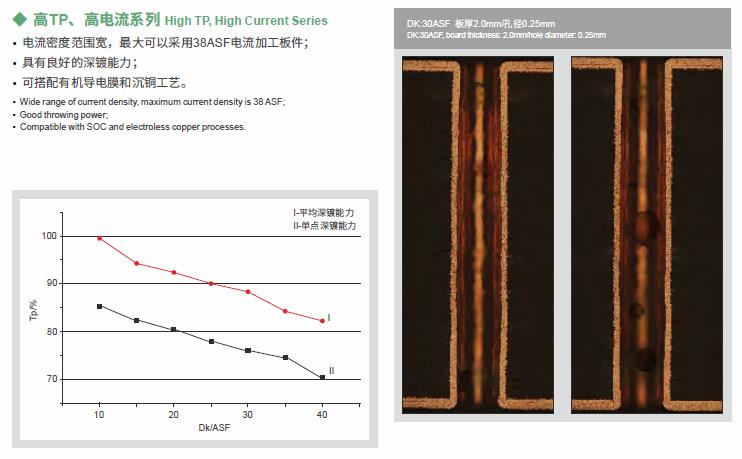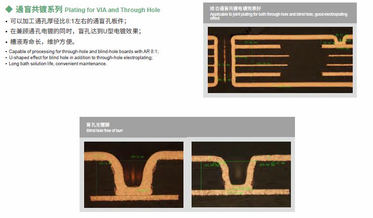 垂直連續電鍍VCP是為垂直連續電鍍設備而開發的酸性銅鍍體系,適應多種板型的電鍍需求,適用高電流密度的通孔電鍍,兼顧沉銅及有機導電膜等直接電鍍,適用通盲共鍍。