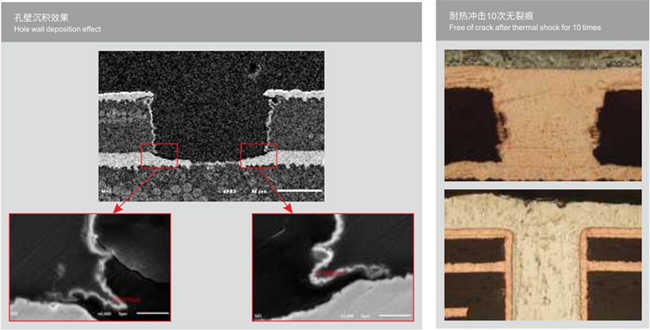 TS-ECuSet系列是應(yīng)用于水平線的中低溫化學(xué)沉銅,堿性離子鈀活化體系,能夠快速再樹脂和玻纖構(gòu)成的孔壁上進(jìn)行均勻、致密且穩(wěn)定的化學(xué)沉銅層。